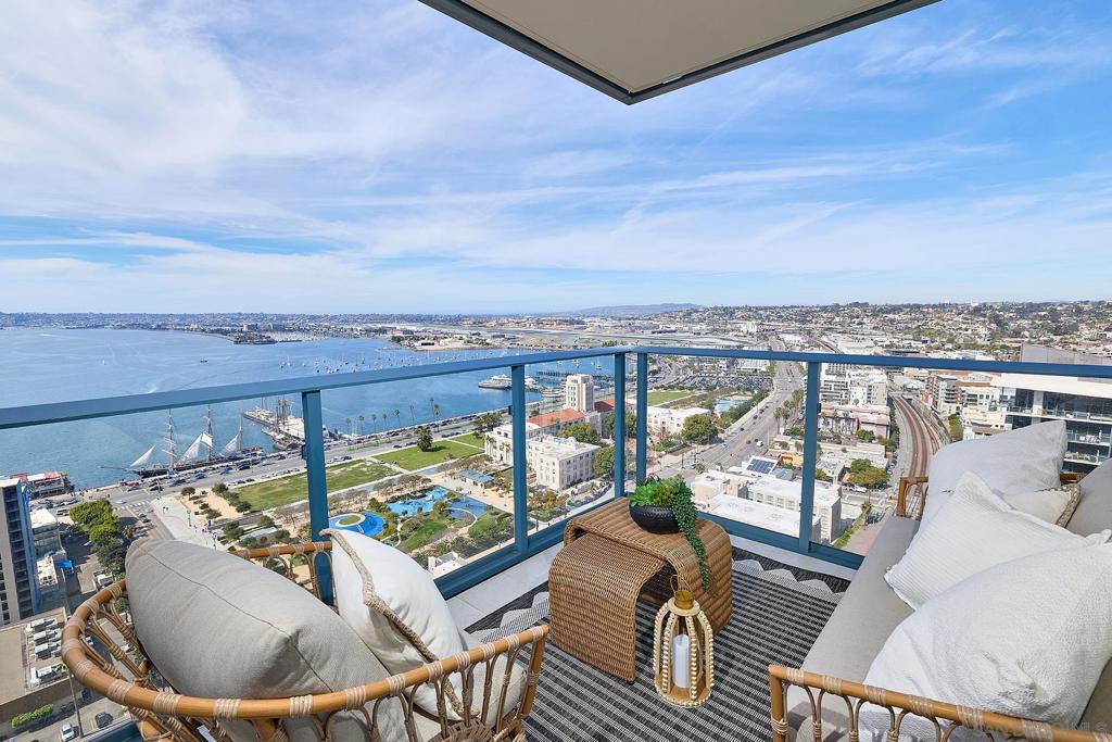 Welcome to elevated coastal living at this stunning northwest corner residence in Savina. Perched high above downtown, this unit showcases breathtaking panoramic views of the San Diego Bay, city skyline, and unforgettable sunsets from nearly every room. almost floor-to-ceiling windows flood this condo with natural light while framing postcard-worthy scenery. The thoughtfully designed interior features a chef’s gourmet kitchen with premium finishes, ideal for both entertaining and everyday living. A rare , hard to come by and highly desirable floor plan in Savina building with very spacious but practical balcony, this condo boasts two oversized walk-in closets—an exceptional find in urban high-rise living—providing abundant storage and comfort. Perfectly positioned in one of downtown’s most coveted locations and neighborhoods, this residence seamlessly blends luxury, functionality, and iconic views, offering an unparalleled lifestyle above it all. Welcome to elevated coastal living at this stunning northwest corner residence in Savina. Perched high above downtown, this unit showcases breathtaking panoramic views of the San Diego Bay, city skyline, and unforgettable sunsets from nearly every room. almost floor-to-ceiling windows flood this condo with natural light while framing postcard-worthy scenery. The thoughtfully designed interior features a chef’s gourmet kitchen with premium finishes, ideal for both entertaining and everyday living. A rare , hard to come by and highly desirable floor plan in Savina building with very spacious but practical balcony, this condo boasts two oversized walk-in closets—an exceptional find in urban high-rise living—providing abundant storage and comfort. Perfectly positioned in one of downtown’s most coveted locations and neighborhoods, this residence seamlessly blends luxury, functionality, and iconic views, offering an unparalleled lifestyle above it all.