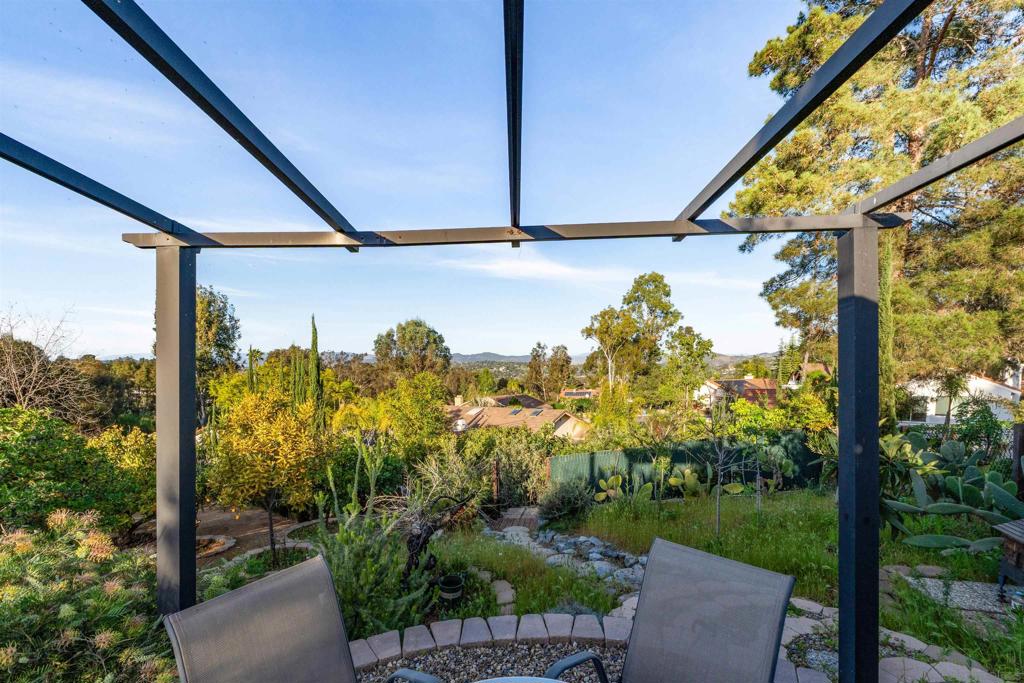 Welcome to your own private botanical garden in the highly desirable South Escondido neighborhood of Lomas Serenas. Tucked away on a peaceful cul-de-sac, this rare single-story former model home sits on over half an acre, offering a daily escape with hummingbirds, butterflies, and fresh fruit harvesting in your own backyard. Wander garden paths through a thriving orchard, past peaceful sitting areas, and a multi-tier waterfall that flows into a tranquil koi pond. Enjoy a farm-to-table lifestyle with citrus, peaches, grapes, apples, berries, honey, and more. Inside, 3,159 sq ft of living space features vaulted ceilings, large skylights, whole-home sound, and elegant spaces for entertaining or relaxing. The kitchen showcases GE Monogram appliances and a large dine-in island, while a beverage bar with dual refrigerators and a formal dining area make hosting effortless. A climate-controlled sunroom and screened patio blend indoor and outdoor living. One bedroom is currently a built-in office, ideal for working from home. The primary suite offers a double-door entry, bonus retreat, and glass doors opening to soothing water features. The spa-style bath includes a soaking tub, garden atrium, and custom walk-in closet. Additional highlights include owned solar, a 3-car garage with workshop, custom patio covers, and a fully fenced yard. Ideally located west of I-15 near Lake Hodges and North County Mall, this home is a true botanical retreat.