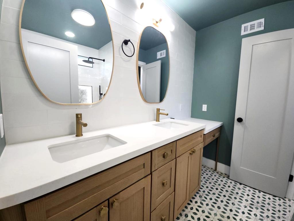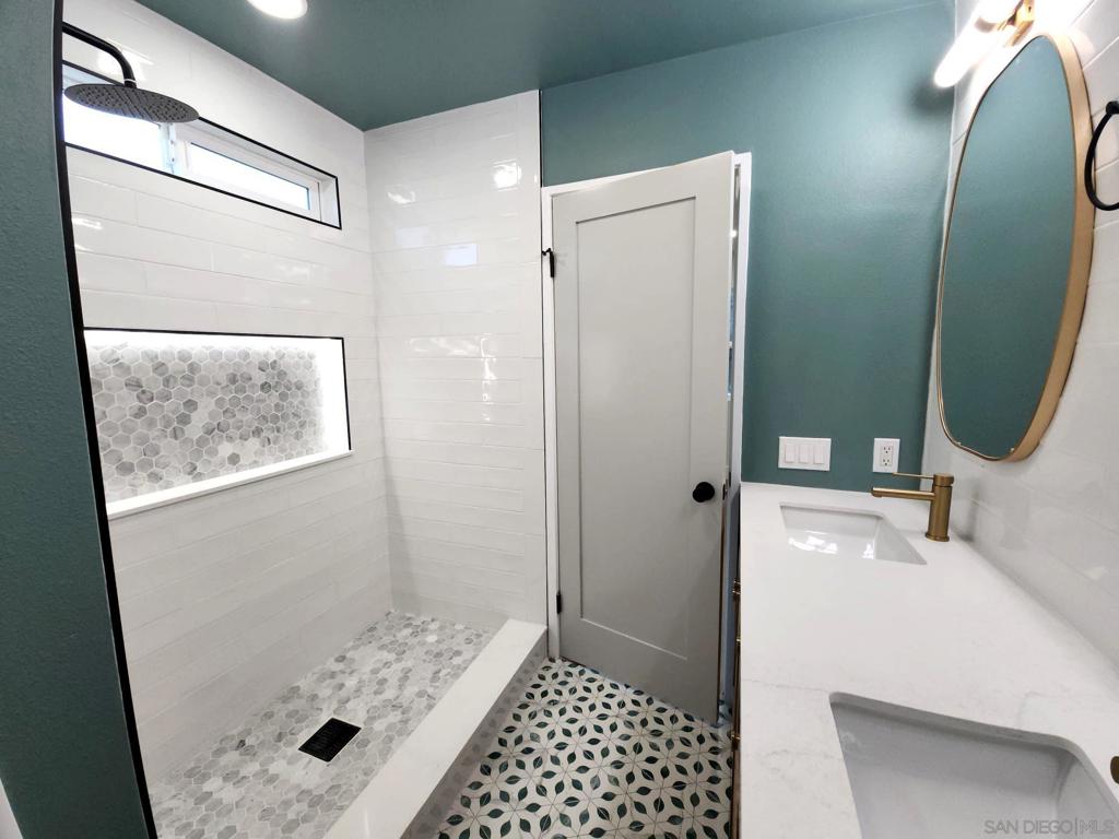 Welcome to this beautifully reimagined single-story home, ideally situated in the heart of Rancho Peñasquitos and within the award-winning Poway Unified School District—just a short walk to Mt. Carmel High School. Thoughtfully designed with a refined, modern aesthetic, this home offers a seamless blend of style, comfort, and everyday livability. Inside, skylights and an open layout create a bright, airy feel, while wide plank luxury vinyl flooring and recessed lighting bring a polished, contemporary edge. The living spaces flow comfortably, striking the right balance between openness and warmth. Designed with both function and style in mind, the kitchen features custom Oak Shaker cabinetry, quartz countertops, a designer tile backsplash, stainless steel appliances, and a premium 6-burner range. An oversized island provides generous prep space and casual seating, making it ideal for gathering and everyday use. Bathrooms make a strong visual statement with a “color drenching” design approach, paired with crisp white subway tile, Oak Shaker vanities, and modern fixtures. The result is a clean, cohesive look with a subtle nod to spa-inspired living. The outdoor space offers room to relax, entertain, or personalize to your needs—an extension of the home’s easy, livable design. Set in one of North County’s most desirable neighborhoods, close to parks, shopping, dining, and major commuter routes, this home delivers a rare combination of style, location, and move-in ready convenience.